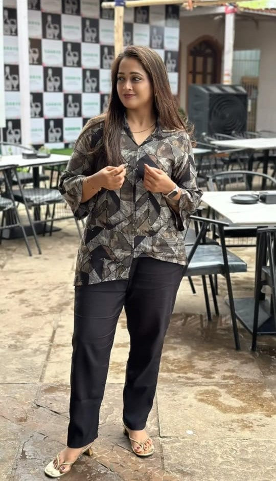 Black Abstract Printed Chanderi Silk Casual Co-Ord Set for Women | Claura