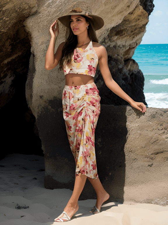Brown Viscose Rayon Floral Printed Night Suit for Women | Claura