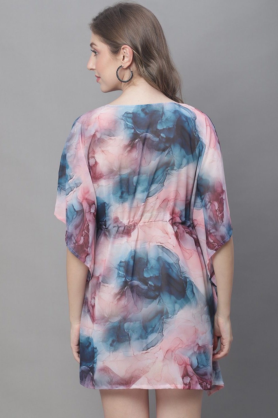 Multi Color Tie and Dye Printed Georgette Coverup Beachwear Kaftan For Woman